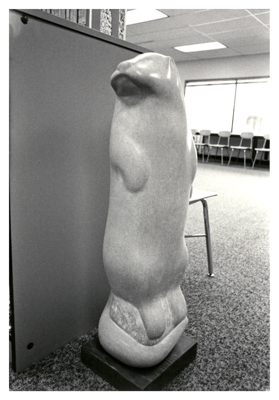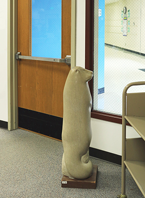 Otter is part of artist Roberta Kelly's series of seven limestone sculptures that depict common Northwest animals, carved using subtle details and stylized forms.