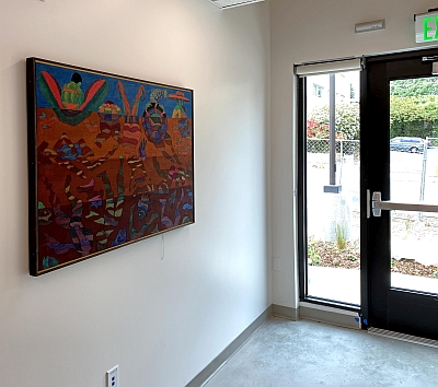 This artwork is part of a curated collection by Renee Adams for the Maple Park Capitol Campus Child Care Center in Olympia. The art selection committee wanted the art to be mainly for the children. They wanted to focus on Northwest artists from diverse backgrounds and geographies, and artworks with color and nature-inspired imagery. The Child Care Center has six classrooms, as well as outdoor classrooms and play spaces, for eighty-four children.