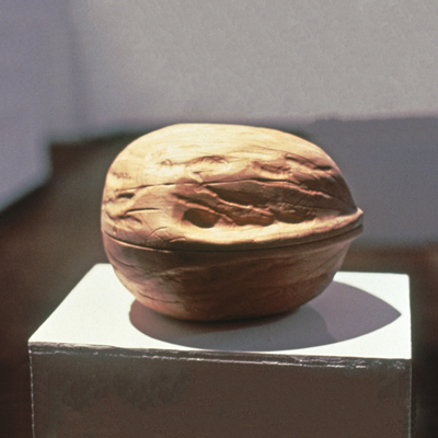 Artist Harold Hoy carved Walnut from Alder wood. Hoy notes that his sculptural works often explore the contrast between the modern world and the natural environment.