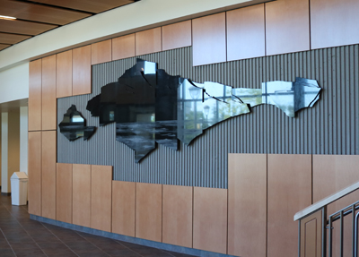 In his two-part granite wall sculpture 'Veritable Quandry', artist Brian Goldbloom portrays abstracted mountains and natural forms in a layered configuration.