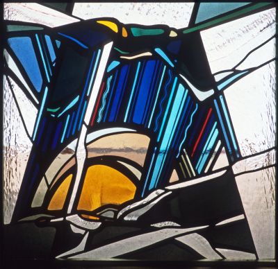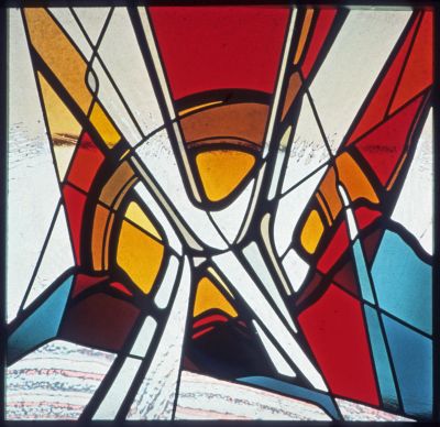 Robert Hill and Jill Hill created eight stained glass windows for West Valley Junior High School. The composed each window using mouth-blown techniques. They painted the glass with oxides to create colors, before they fired them for permanency.