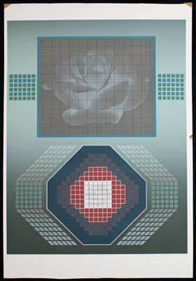 This piece is part of artist David Haidle's 'Rose Matrix' series. Artworks in the series combine flower imagery with computer-generated grids and schematics. These works point to the complex structure and design in seemingly simple, natural forms.