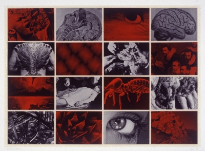 Firerim is part of a series by artist Paul Berger. He created the layered compositions by recording and digitizing television news segments. The series investigates how context and composition can change the meaning of images. The series also highlights how our use of computer-based designs and programs has evolved rapidly in the past thirty years. Berger created this series for Multiples: The Sciences and Art (1991), an exhibition of ten micro-collections commissioned to tour Washington State school districts. The micro-collections offer different perspectives of ten artists exploring ideas and issues related to science, and ask students to re-consider assumed and widely accepted aspects of science.