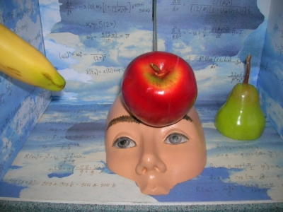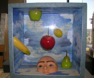 Other Fruit Would Do is part of a series of mixed media sculptures by artist Bill Will. The playful sculptures are made of found objects, often with sounds and moving elements as well. Will's titles and compositions are full of visual puns and humor. Bill Will created this series for Multiples: The Sciences and Art (1991), an exhibition of ten micro-collections commissioned to tour Washington State school districts. The micro-collections offer different perspectives of ten artists exploring ideas and issues related to science, and ask students to re-consider assumed and widely accepted aspects of science.