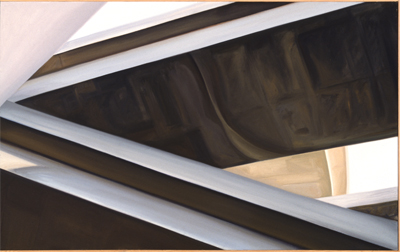 Mojuana Tolon's Number Thirty-Four painting is realistic but also almost abstract with its close focus on lines, angles, forms, and texture. The many diagonal lines draw the eye to explore.