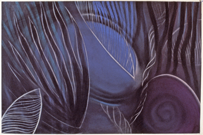 Dark Passage is a drawing by artist Nancy Halbrooks. It is part of her ‘Desire’ series of abstract pastel and charcoal drawings. She used a process of layering and wiping away areas of color and shadow to create the images in this series. She notes, “These drawings are not about anything specific, but are half thoughts, floating dreams, fleeting images, perhaps flashing ideas.”