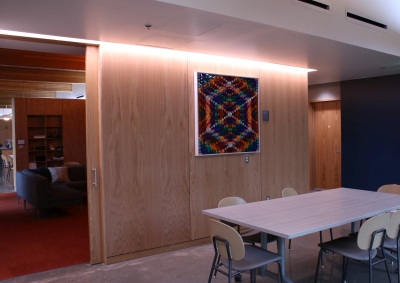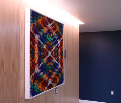 Artist Dick Elliott created Cycle of the Sun - Study IV as a study for a series of nine reflector panels that were originally installed on the outside of the Henry Art Gallery, on the University of Washington campus in Seattle. The complex patterns of reflectors were based on the exterior brickwork of the 1926 building. This artwork was re-sited to the Washington State School for the Blind's LIFTT Residence in 2023. In consideration of some residents having various levels of sight, Elliott’s reflector art offers a colorful visual experience and a tactile exploration of the geometric design. This artwork is part of a curated collection by Gregg Schlanger in October 2023 for the Washington State School for the Blind in Vancouver. The local Art Selection Committee wanted artworks that anyone can approach and fully experience and understand via more than just sight. Gregg Schlanger selected artworks that have a tactile experience.