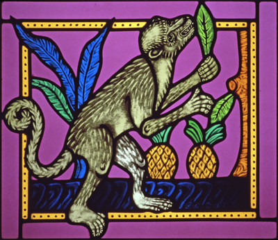 Animals of the Chinese Zodiac: Year of the Monkey is part of artist Cappy Thompson's series of "grisaille" stained glass windows based on Chinese mythology.