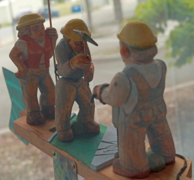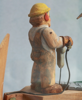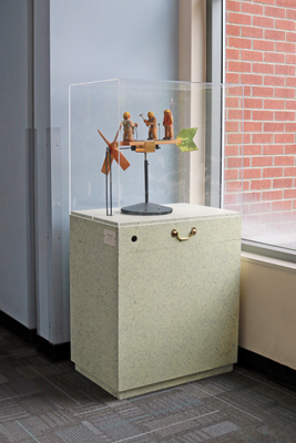 Crew Working is part of artist Victor Moore's series of whimsical whirligigs. These charming, hand-carved, kinetic sculptures explore the humor and humanity in our everyday movements. They spin and come alive with the help of an electric motor.
