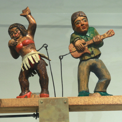 Tina Turner II is part of artist Victor Moore's series of whimsical whirligigs. These charming, hand-carved, kinetic sculptures explore the humor and humanity in our everyday movements. They spin and come alive with the help of an electric motor.
