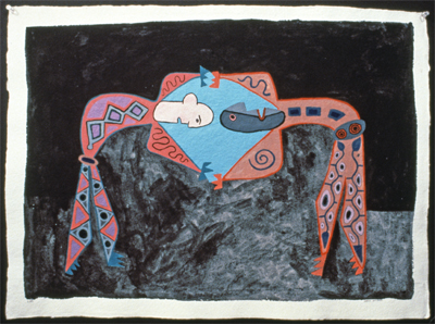 Northwest artist Garth Edwards (1950-2021) created playful, figurative works on paper, sculptures, and installations. He worked mainly in metal and stained glass.Edwards grew up in Portland, Oregon, and studied glassblowing at Portland State University in Oregon and at Pilchuck Glass School in Stanwood, Northwestern Washington. He taught at Portland Community College and the Oregon School of Arts and Crafts (both in Oregon), and worked full-time as an artist since 1980.