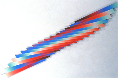 One of the pioneers of Op-Art, northwest artist Francis Celentano creates paintings and sculpture that investigate perception and color theory. Using a gradient of vibrant colors assembled as diagonal panels, Spira N Syncopated generates an optical illusion, compelling the viewer toward a responsive perceptual experience.