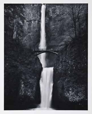 Multnomah Falls is part of artist Jim Ball's long-term project documenting waterfalls. This photograph features rich textural detail of the landscape surrounding Multnomah Falls, located in the Columbia River Gorge. It is the tallest waterfall in Oregon, with water dropping in two steps for a total height of 620 feet. It was added to the National Register of Historic Places in 1981.