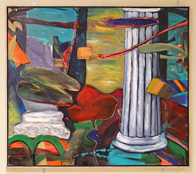 The Temple of Dreams is a colorful and energetic painting created by artist William Turner. His exploration of Greek and Roman ruins in North Africa inspired this painting. He notes, "My love of painting from all eras has led me to try lots of different styles but my greatest satisfaction has come from working spontaneously, discovering my images through the painting process and continuously solving problems on the spot, right on the canvas. In addition, I have attempted to integrate into the picture the large gestural brushstrokes of a pure action painting style side by side with concrete elements from reality, such as the column in The Temple of Dreams. The result I hope to achieve is a reality at once familiar and mysterious."