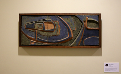 Space Toboggan is a ceramic relief sculpture created by artist Thomas Emmerson. The title refers to a wooden sled characterized by an upward curve at the front. The bold, abstract composition and curved forms are based on traditional formline design elements found in Indigenous Coast Salish artistic traditions.