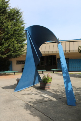 Passages is an abstract sculpture created by artist Julia Kerl for Evergreen Middle School. She designed the sculpture as a passageway that students could walk under. She notes, "It also embodies junior high school and the student's passage from grade school to high school, from childhood to adolescence and into the journey of adulthood, each with its many changing points of view."