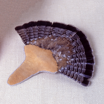 Black Design Dancing Fan was hand-crafted by Colville artist Debbie Finley in Spokane, Washington. The buckskin backing was tanned and stretched by the artist and the beads were chosen to create a tight and even design. This artwork is part of Beyond Blue Mountains, a collection that was curated by late Tlingit (Native Alaskan) artist Jim Schoppert. It presents the work of Native American artists of diverse heritage, ideas, materials, and styles. The collection takes an in-depth look at the artists’ unique voices and interpretations of tradition.