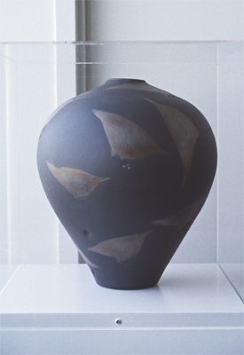 Artist Frank Boyden created Bird Vase as part of a series of vases inspired by the Water Ouzel bird, commonly known as the American dipper. This species of bird can see underwater and feeds on aquatic insects at the bottom of rocky streams. Boyden traced the bird images into the clay and glazed them before firing the vase in a kiln. He then surrounded the vase with burning material, which gave the unglazed areas a smoky black finish.
