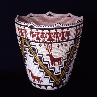 Native American artist Nettie Kuneki Jackson (Yakama and Klickitat, 1942-2013) is a celebrated and respected Klickitat basket maker, descended from a family of master basket weavers. The Klickitat people are from Central Washington and Oregon.Kuneki did not learn basket weaving until age thirty, as it seemed unimportant to modern life. Growing up, she spent her summers with her Klickitat grandmother, Mattie Spencer Slockish, who was a skilled basket maker. Later she watched her mother-in-law, Elsie Thomas, make baskets using traditional shapes and materials such as beargrass and split cedar. Jackson was inspired by these women, and by her mother's wish before her death in 1972 that her daughters take up tribal traditions. Kuneki carried on those traditions as a creative basket maker who was also dedicated to keeping the tradition of Klikitat basket weaving alive.